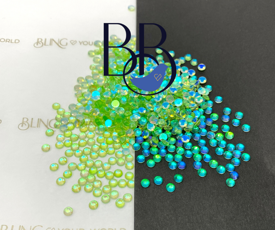 Aurora Rhinestones are a unique stone that shows different colors depending on if placed over light or dark backgrounds. Use these stones to create multicoloured designs with only one stone.